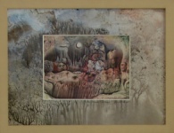 Die drei Moiren (3) Farbstift auf Aquarellgrund mit Passepartout 50 x 70