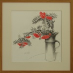 Ebereschen Farbstift Schwarz-Rot mit Passepartout 60 x 60