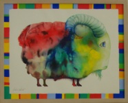 Die Kaschmierziege genetisch eingefärbt Aquarell und Farbstiftzeichnung 50 x 40